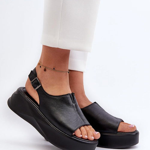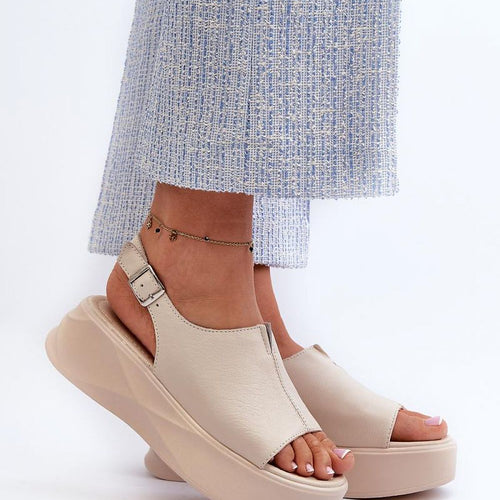 Women's sandals are made of high-quality natural leather, ensuring durability. Set on a substantial platform, they provide stability and extra height. Thanks to the adjustable buckle strap, the fit to the foot is easy and precise. The trendy design makes them a perfect addition to summer wardrobe, adding style and confidence to every outfit! fabric natural leather Footbed natural leather...