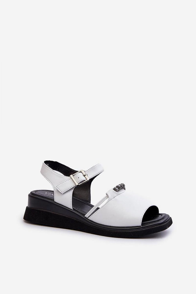 Women's sandals by Vinceza. Made from genuine leather. The wedge adds lightness and stability to the silhouette, perfectly complementing summer stylizations. Fastened with an adjustable buckle strap, guaranteeing a perfect fit to the foot. fabric natural leather Footbed artificial leather Heel height 4.5 cm Size Insole lenght 36 23.5 cm 37 24 cm 38 24.5 cm 39 25 cm 40...