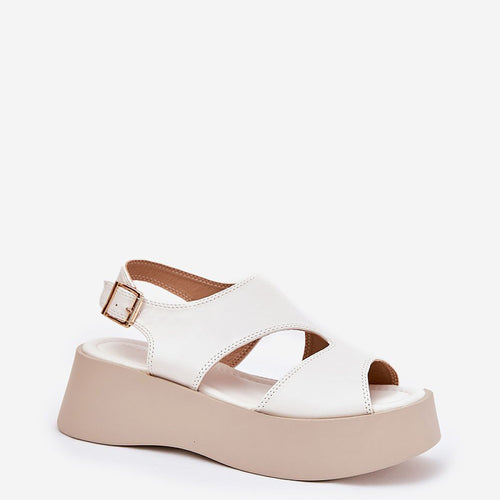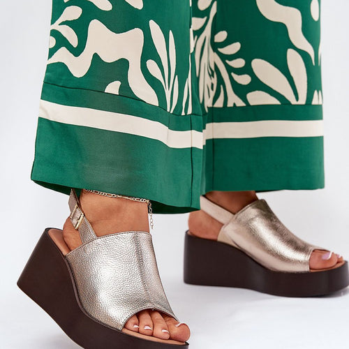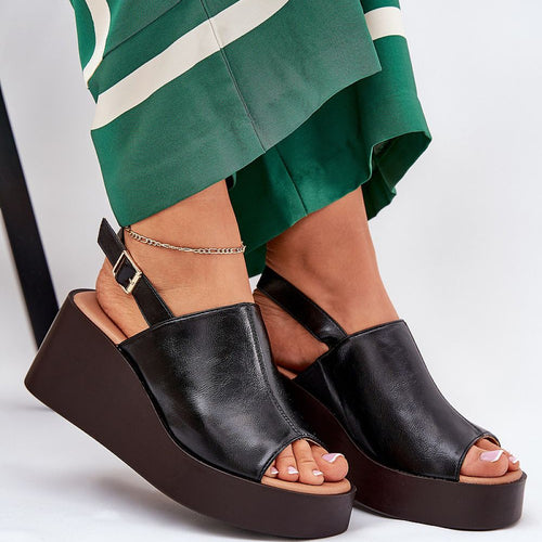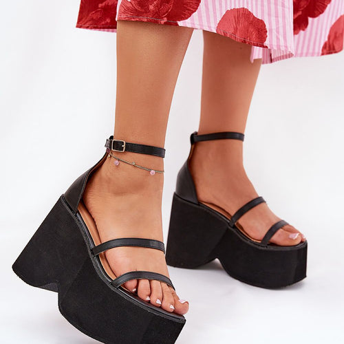 Women's sandals made of eco leather, set on a platform and delicate wedge heel, combining comfort with a fashionable look. Fastened around the ankle with a buckle and adjustable strap, allowing for a perfect fit. The soft insole provides comfort throughout the day. Perfect for warm days, these sandals pair perfectly with dresses, skirts, and pants, adding a touch of...