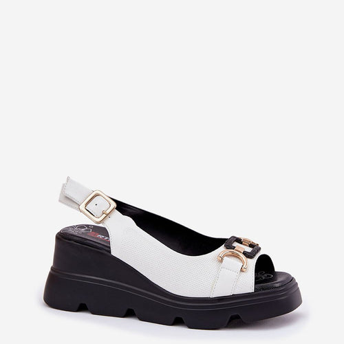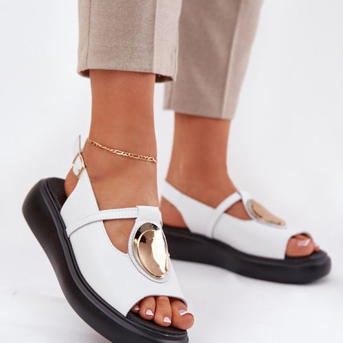 Women's sandals made of natural leather, set on a wedge heel, are an elegant choice for warm days. The model stands out with a front decoration that gives them a unique character. Fastened with a buckle with an adjustable strap, they ensure a perfect fit to the foot. Additionally, the soft insole guarantees comfort throughout the day. These sandals will...