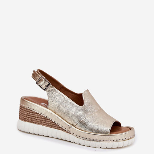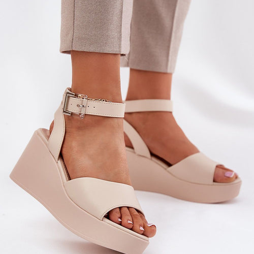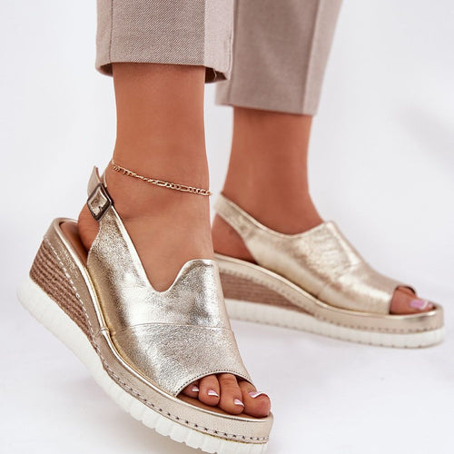 Women's sandals made of natural leather are an elegant option for warm days. Set on a wedge heel, they provide stability and comfort throughout the day. Fastened with a buckle with an adjustable strap, they allow for a perfect fit to the foot. The soft insole guarantees comfort, and the classic cut makes these sandals a perfect choice for dresses...