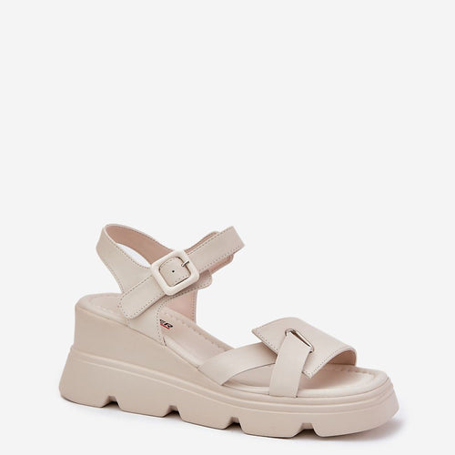 Elegant women's sandals made of natural leather are a perfect choice for warm days. Set on a wedge heel, they provide comfort and stability throughout the day. The model is distinguished by a front decoration that gives them a unique character. The leather insole guarantees comfort, and the sole with a tread ensures proper grip, making these sandals combine elegance...