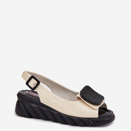 Elegant and stylish sandals made of natural leather are a perfect choice for summer days. Set on a wedge heel, they provide comfort and stability throughout the day. At the front, there is a modern, geometric decoration that adds a unique character to them. Fastened with a buckle and an adjustable strap, they allow for a perfect fit to the...