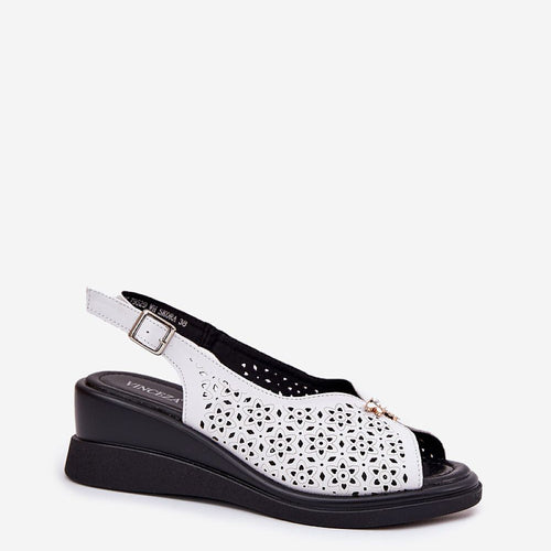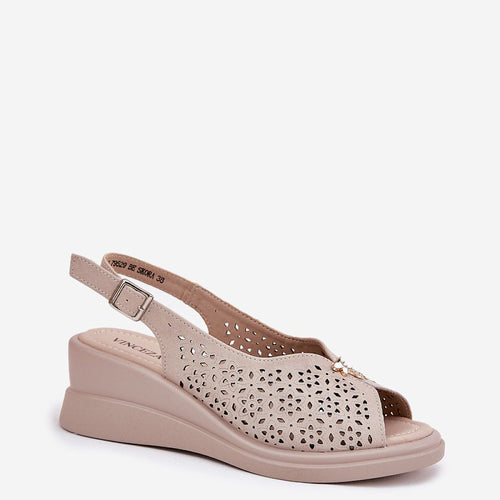 Women's sandals from the Vinceza brand are an elegant option for summer days. Made of natural leather, they provide durability and comfort throughout the day. Set on a delicate wedge, they add lightness and style, and fastened with a buckle allow for a perfect fit to the foot. At the front, there is a subtle decoration that gives them a...