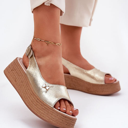 Women's sandals made of natural leather are an ideal proposition for warm days. Set on a wedge and platform with a braided imitation. Fastened with a buckle with an adjustable strap, allowing for easy adjustment to the foot, providing comfort and stability throughout the day. On the side of the upper, there is a small, decorative detail. These sandals will...