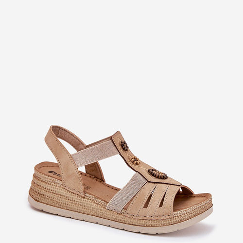 Women's sandals from the brand INBLU. Set on a delicate wedge heel. This model is distinguished by subtle decorations. Anatomical COMFORT insole, profiled, adapted to the anatomical shape of the foot, made of natural leather. The double-layer sole made of lightweight and elastic polyurethane material provides flexibility and very good weight transfer to the ground. fabric artificial leather Footbed suede...