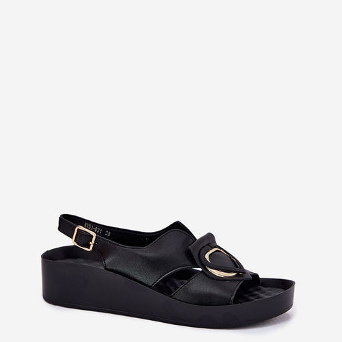 Women's sandals made of eco-leather are a combination of elegance and comfort. Set on a wedge heel, they provide stability and comfort throughout the day. Fastened with a buckle with an adjustable strap, they allow for a perfect fit to the foot. This model has a very soft leather insole, which increases wearing comfort. The elegant design makes the sandals...