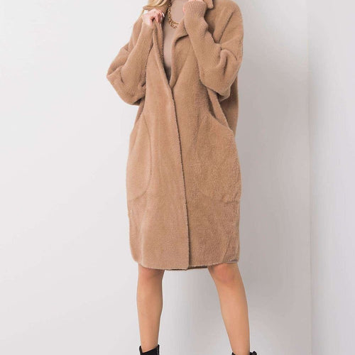 Women's coat fastened with press studs, with slip pockets. Perfect for autumn and beyond. Angora 15.3 % Polyester 23.5 % Viscose 22.8 % wool 38.4 % Size Total length Chest one-size-fits-all 86 cm 124 cm