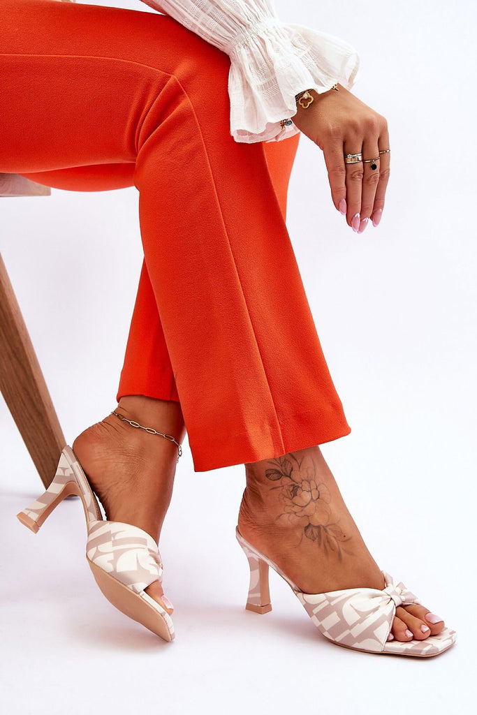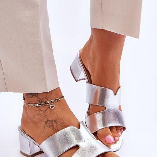 Classic heeled flip-flops made entirely of eco leather. They feature cutouts on the side of the upper. Soft insole will ensure comfort even throughout the day. Simple, classic cut set on a low post. These flip-flops feature an open, rounded nose. This moden will go well with many styles. fabric artificial leather Footbed artificial leather Heel height 4.5 cm Size...