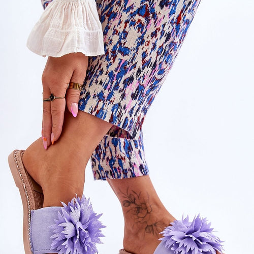 Women's flip-flops with a striking ornament on the front. Made of eco-suede, while the decoration is made of fabric. The insole and sole are made of rubber material. The nose is open, slightly square. Decoration in the form of a string around the sole. The flip-flops set on a flat heel, with a non-slip sole. The flip-flops are airy, so...