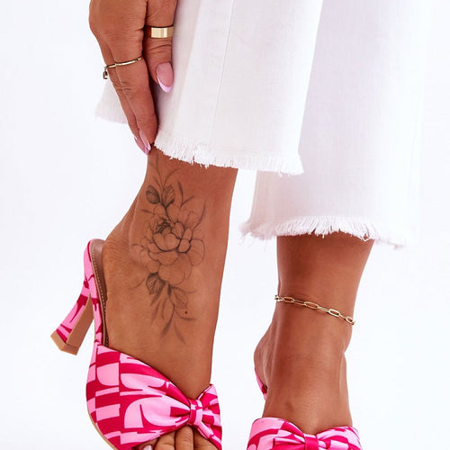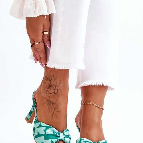 Comfortable women's flip-flops are made of textile material in an interesting print. They have a soft bow on the front. The insole was made of eco leather and is extremely comfortable to wear. These shoes are set on a low heel in the form of a wider stiletto. This model will accentuate many stylings! You should definitely own these flip-flops!...