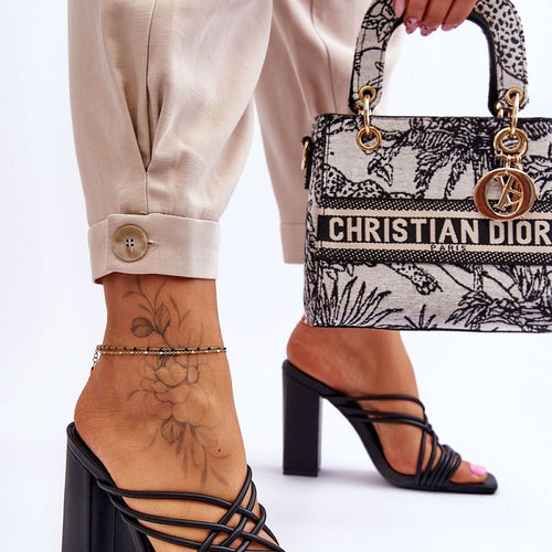 Classic women's flip-flops have been set on a heel in the form of a post. Made entirely of eco leather. They have fashionable stripes intertwined with each other. The soft insole will ensure comfort even throughout the day. Fashionable, classic cut with an open, rounded nose. fabric artificial leather Footbed artificial leather Heel height 10.5 cm Size Insole lenght 36...