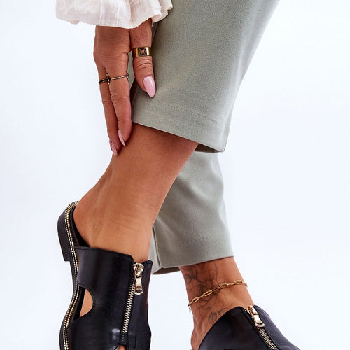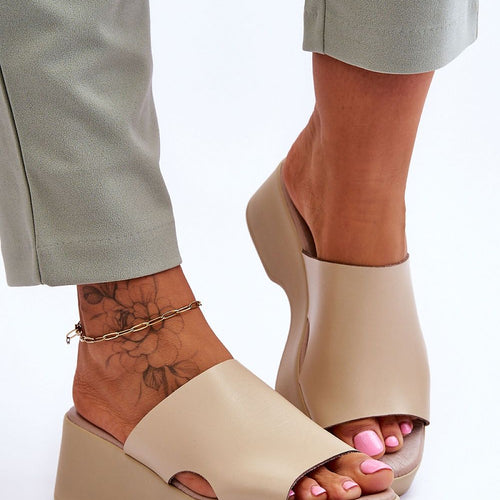 Women's classic flip-flops were made of natural leather with cutouts. Set on a flat heel with a decorated sole. This model is sure to appeal to any woman who appreciates style and comfort. The soft leather insole will allow comfortable use of the shoes even throughout the day. fabric natural leather Footbed natural leather Heel height 6 cm Platform height...