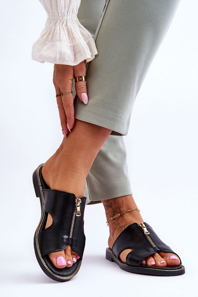The classic women's flip-flops were made of high-quality natural leather. In addition, they were decorated with a zipper and cutouts on the sides of the upper. The flip-flops are slip-on. Set on a flat heel with a decorated sole. They will look great with boho style dresses, loose shorts or skirts. fabric natural leather Footbed natural leather Heel height 2...