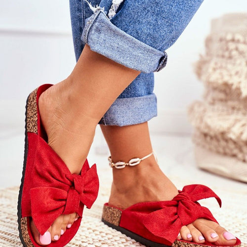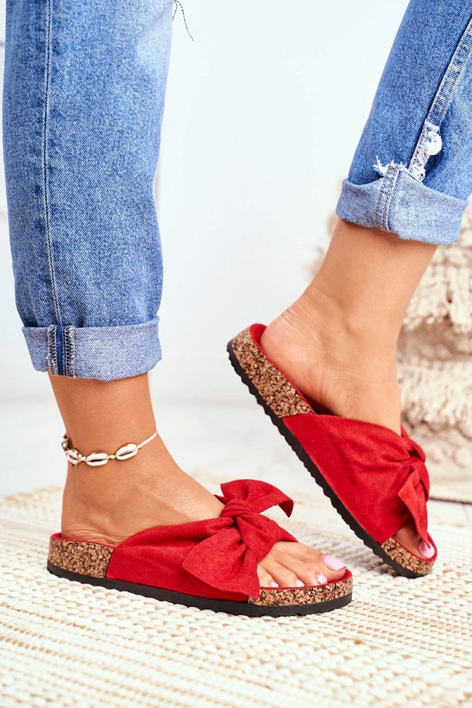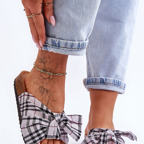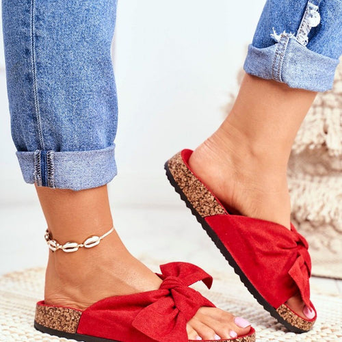 Classic flip-flops on a cork sole have a contoured insole. They are made of textile material on the outside, while the insole is made of eco-suede. On the front there is a charming bow. The flip-flops will work well in many situations: everyday, for work or shopping, but also at home instead of slippers. This model is perfect for summer!...