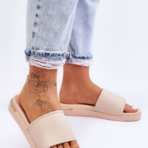 Women's flip-flops are made of foam material. On the strap there are fashionable decorations and an inscription. This model was set on a delicate platform. These flip-flops will suit many occasions, for example: to the pool or the beach. This extremely lightweight model is very comfortable to wear. fabric ~pianka Footbed ~pianka Sole height 2 cm Size Insole lenght 36...
