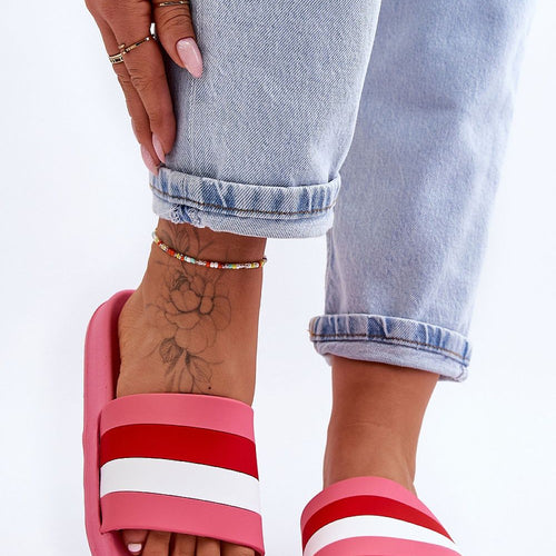 These classic flip-flops are made with a rubber upper, while the insole and sole are made of foam material. There are stripes on the strap. This model was set on a delicate platform. These flip-flops are also great for the pool or the beach. Be sure to check out the other models of flip-flops as well! fabric gum Footbed ~pianka...