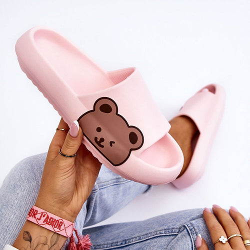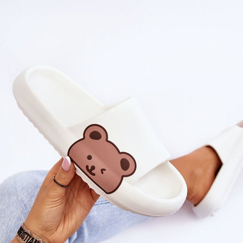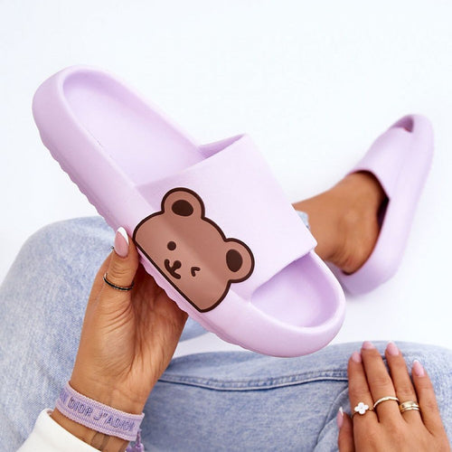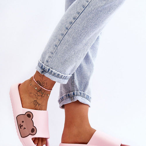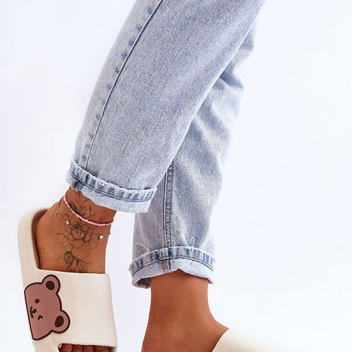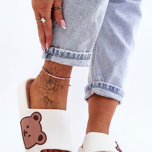 Cute women's flip-flops are made of foam material. On the side of the upper there is an adorable teddy bear motif. This model was set on a massive platform. You can also use them as house shoes instead of slippers. This lightweight model is extremely comfortable during use. You should definitely have them! fabric ~pianka Footbed ~pianka Sole height 3...