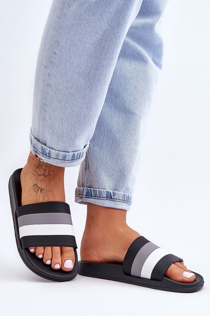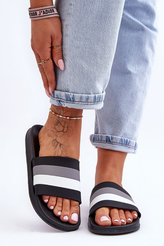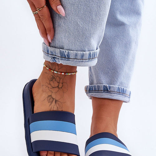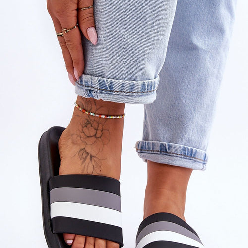 These classic flip-flops are made with a rubber upper, while the insole and sole are made of foam material. There are stripes on the strap. This model was set on a delicate platform. These flip-flops are also great for the pool or the beach. Be sure to check out the other models of flip-flops as well! fabric gum Footbed ~pianka...