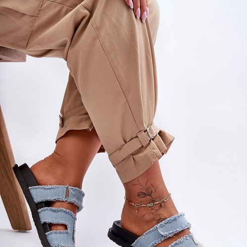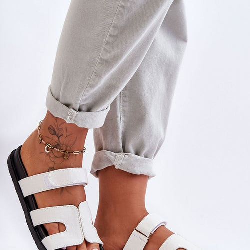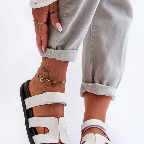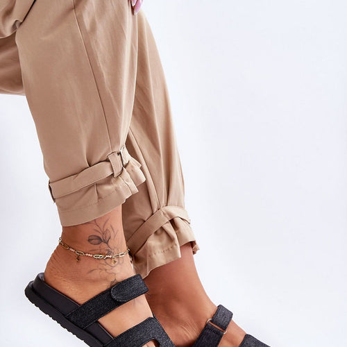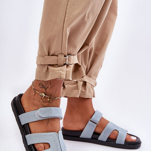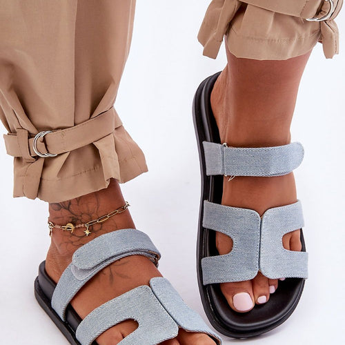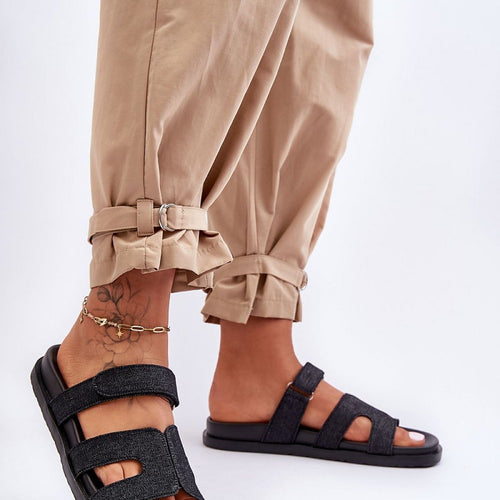 Comfortable women's flip-flops were made of textile material. These shoes were set on a plastic platform. This model has an additional Velcro fastening, thanks to which you can adjust the footwear to your leg's stiffness. This model will be great for everyday use on hot days! fabric fabric Footbed ~tworzywo sztuczne Platform height 2 cm Size Insole lenght 36 23...