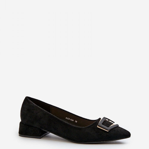 Elegant pumps made of high-quality eco-suede. Set on a low, stable heel. Pointed nose will optically slenderize the legs. The ornament on the front adds elegance, attracting the eye. Soft leather insole will provide comfort with every step. Ideal for both everyday and more formal styling. fabric imitation leather suede Footbed natural leather Upper height 5.5 cm Heel height 3.5...