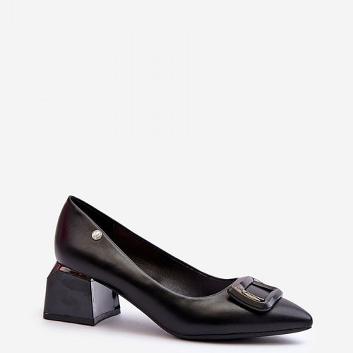 Women's pumps by Vinceza brand. Made of eco leather. The block heel adds elegance, making them an ideal choice for both work and formal family occasions. Pointed noses optically slenderize the legs. On the front, there is an ornament. This elegant cut absolutely must be yours! fabric artificial leather Footbed natural leather Upper height 6 cm Heel height 5.5 cm...