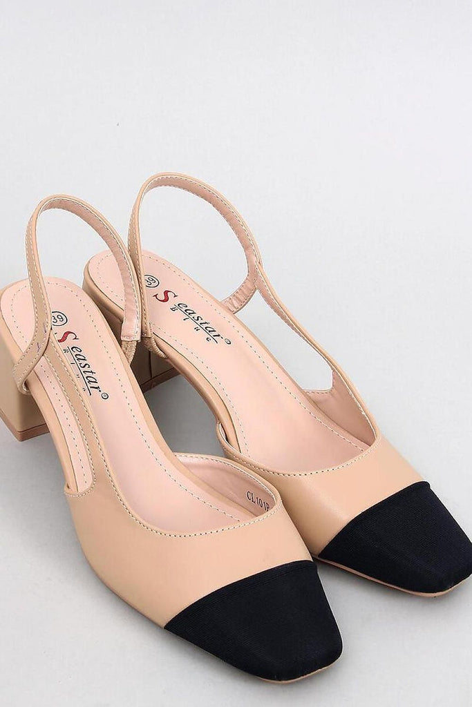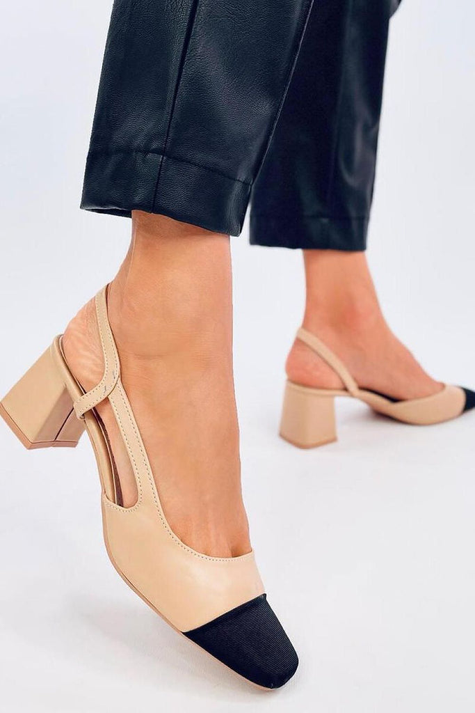 Two-tone sandals with a low heel. They have a fashionable cut with square toes in black color. The wide heel of 6 cm will provide comfort on every step - check it yourself : ) These shoes are a decoration in themselves and will surely steal your heart : ) Outer material ? ecological leather + fabric. fabric leatherette +...