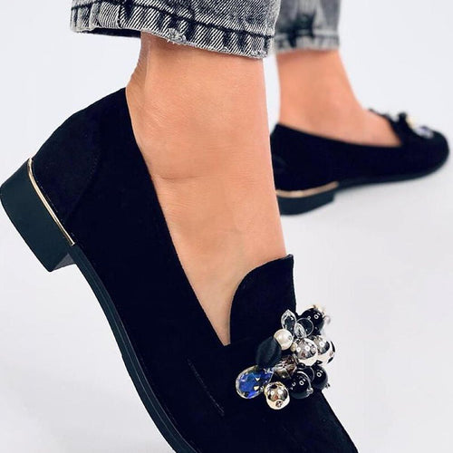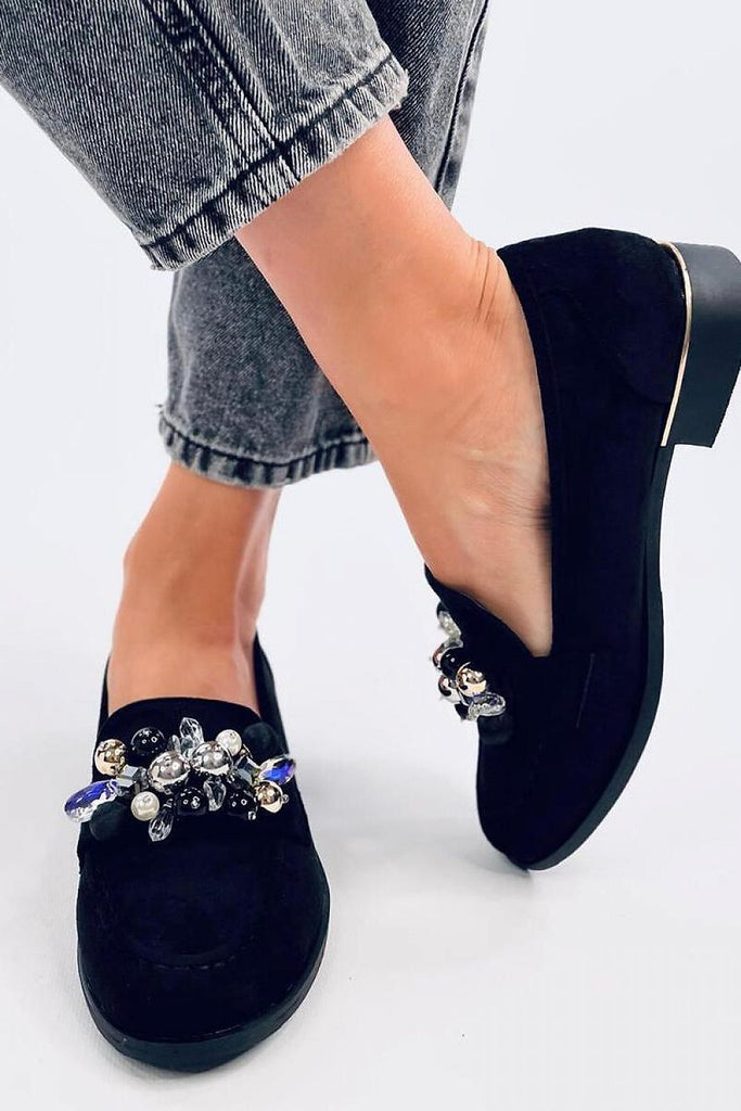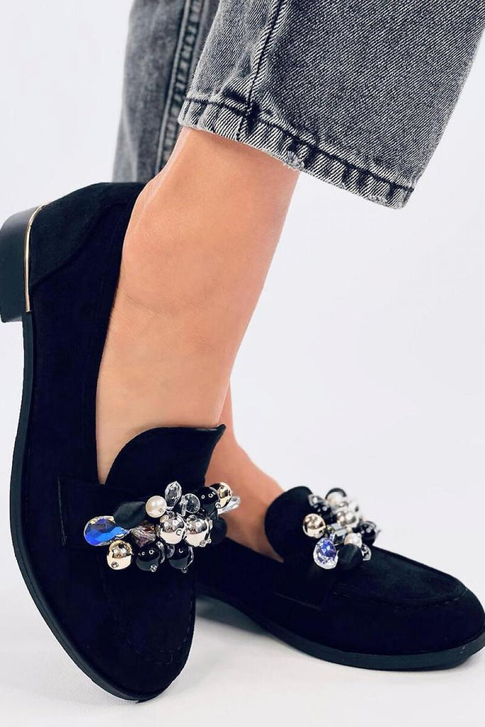 Women's suede moccasins. The combination of a simple cut with glittering multicolored stones will impress everyone : ) Soft inner insole is another argument in favor of these shoes. You will feel fashionable, feminine and comfortable in them - give them a chance to conquer your closet! Outer material - ecological suede. fabric ecological suede Size Insole lenght 36 23,3...