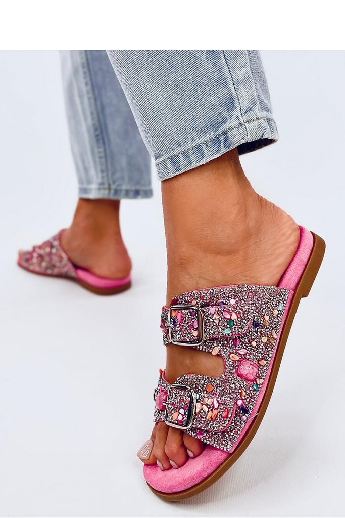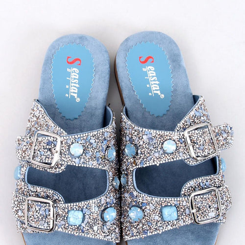 Women's suede flip-flops. This unique model embellished with sparkling stones and zircons will attract all eyes! You will feel fashionable in them, but also comfortable - they have a soft inner insole. Check it out for yourself! Outer material ? ecological suede. fabric ecological suede Size Insole lenght 36 23,5 cm 37 24,2 cm 38 24,8 cm 39 25,5 cm...