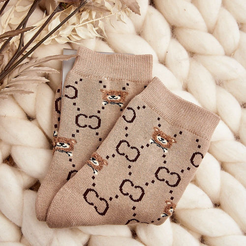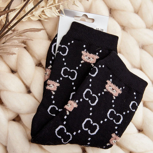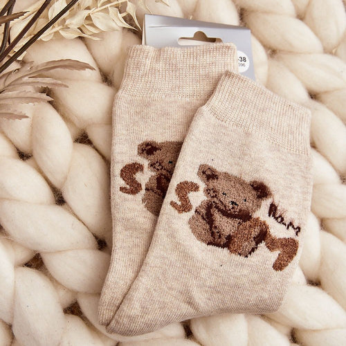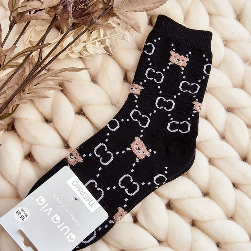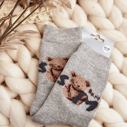 Warm women's socks ideal for cold days. Model with a patch in the form of a teddy bear. The lightweight ribbing will make them perfectly adapted to the leg's stiffness. You should definitely have them! Cotton 85 % Spandex 5 % polyamide 10 %