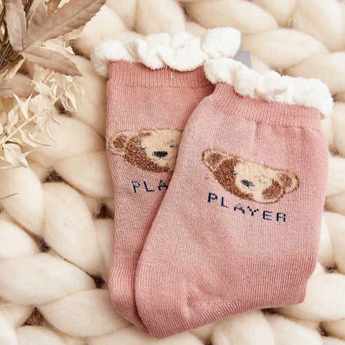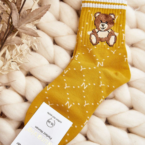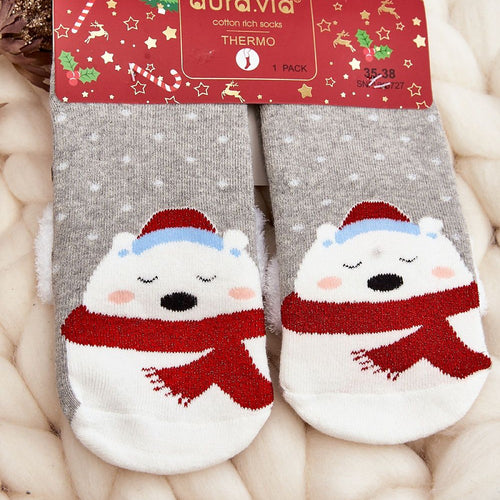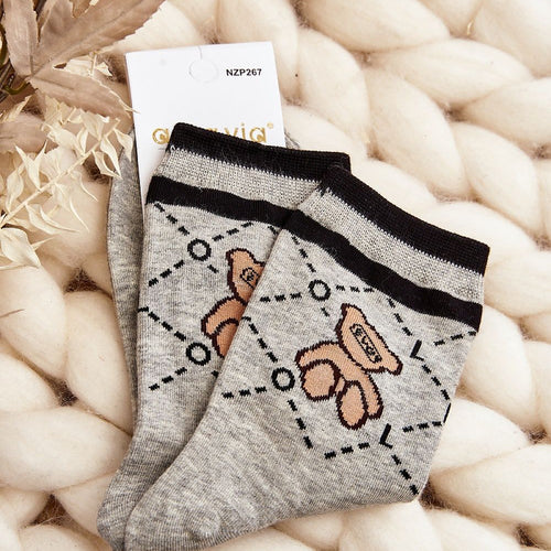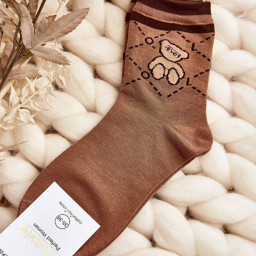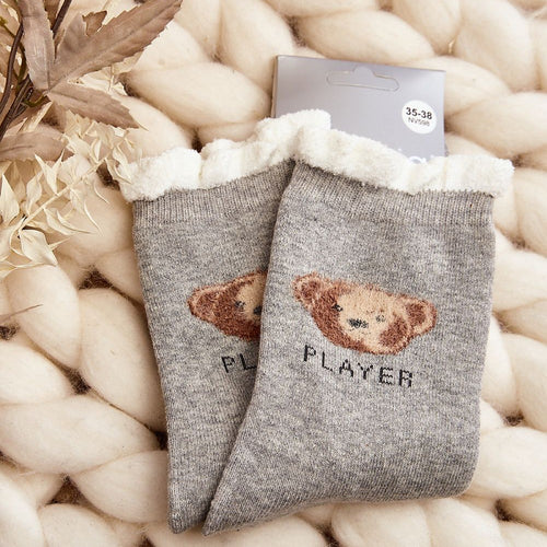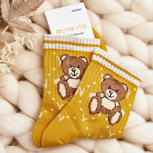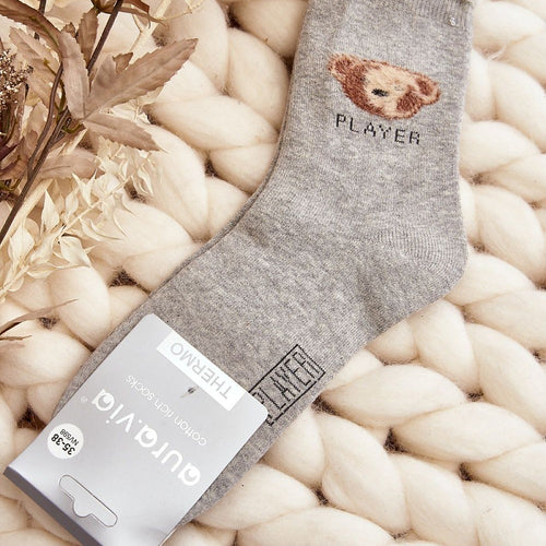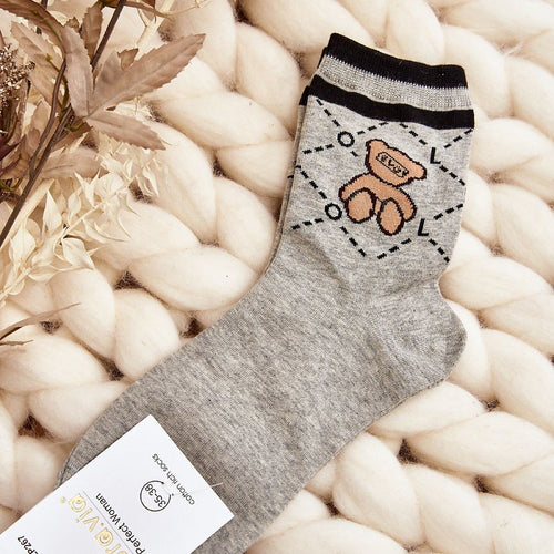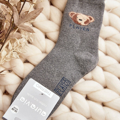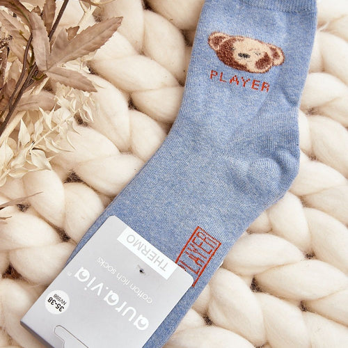 Warm women's socks ideal for cold days. Model with a patch in the form of a teddy bear. The lightweight ribbing will make them perfectly adapted to the leg's stiffness. You should definitely have them! Cotton 85 % Spandex 5 % polyamide 10 %