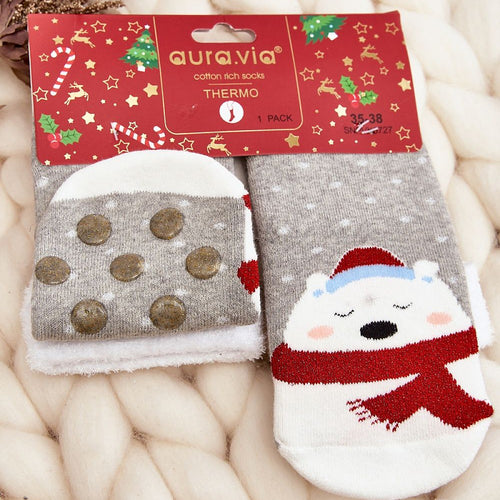 Beautifully packaged socks with Christmas motifs are perfect for a gift ! They were made mainly of cotton. Under the foot they have non-slip elements. At the top of the sock there is a pleasant to the touch warming. They are great for cold days! Choose your favorite model! Cotton 85 % Spandex 5 % polyamide 10 %