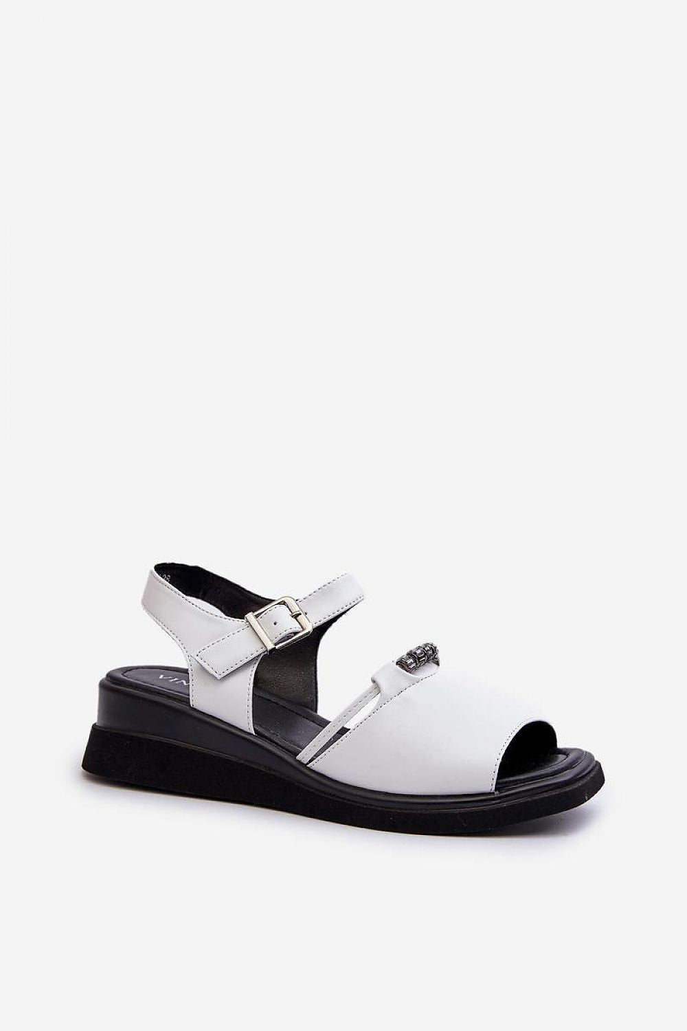Women's sandals by Vinceza. Made from genuine leather. The wedge adds lightness and stability to the silhouette, perfectly complementing summer stylizations. Fastened with an adjustable buckle strap, guaranteeing a perfect fit to the foot.