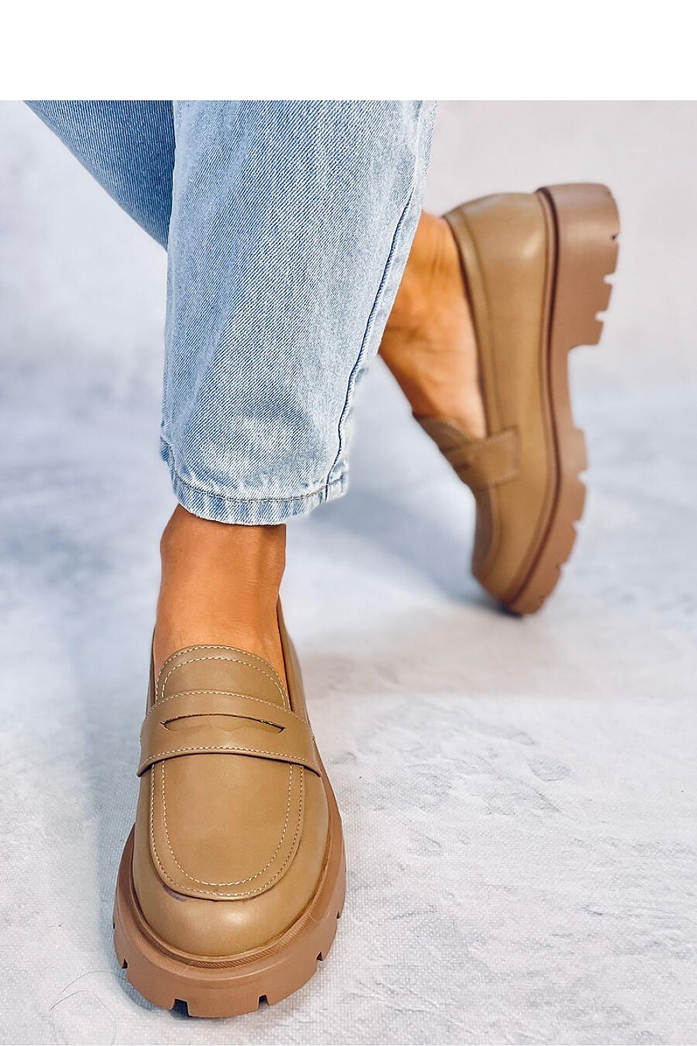 Women's platform moccasins. The combination of a classic cut with a fashionable high sole is always on trend : ) Soft inner insole will provide comfort on every step - see for yourself : ) Outer material ? matte ecological leather.